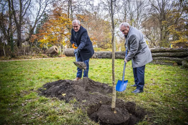 Rektor PŁ i prezes Akademii Inżynierskiej w Polsce posadzili dąb upamietniający Gabriela Narutowicza