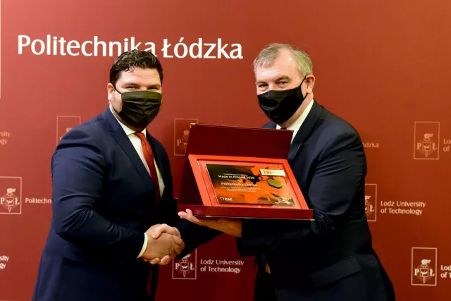 Rektor prof. Krzysztof Jóźwik otrzymał z rąk prezesa Polskiej Agencji Przedsiębiorczości Wojciecha Pomarańskiego przyznaną Politechnice Łódzkiej nagrodę Made in Poland 2020. - Bardzo cieszy mnie to wyróżnienie, które oznacza, że realizowane przez nas progospodarcze i prokonsumenckie projekty są dostrzegane i doceniane – mówił po spotkaniu.