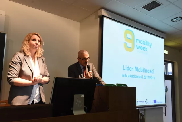 Uroczyste otwarcie Mobility Week zainaugurował prof. Grzegorz Bąk, prorektor PŁ ds. kształcenia, obok dr inż. Dorota Piotrowska, dyrektor CWM PŁ oraz Uczelniany Koordynator Programu Erasmus+
