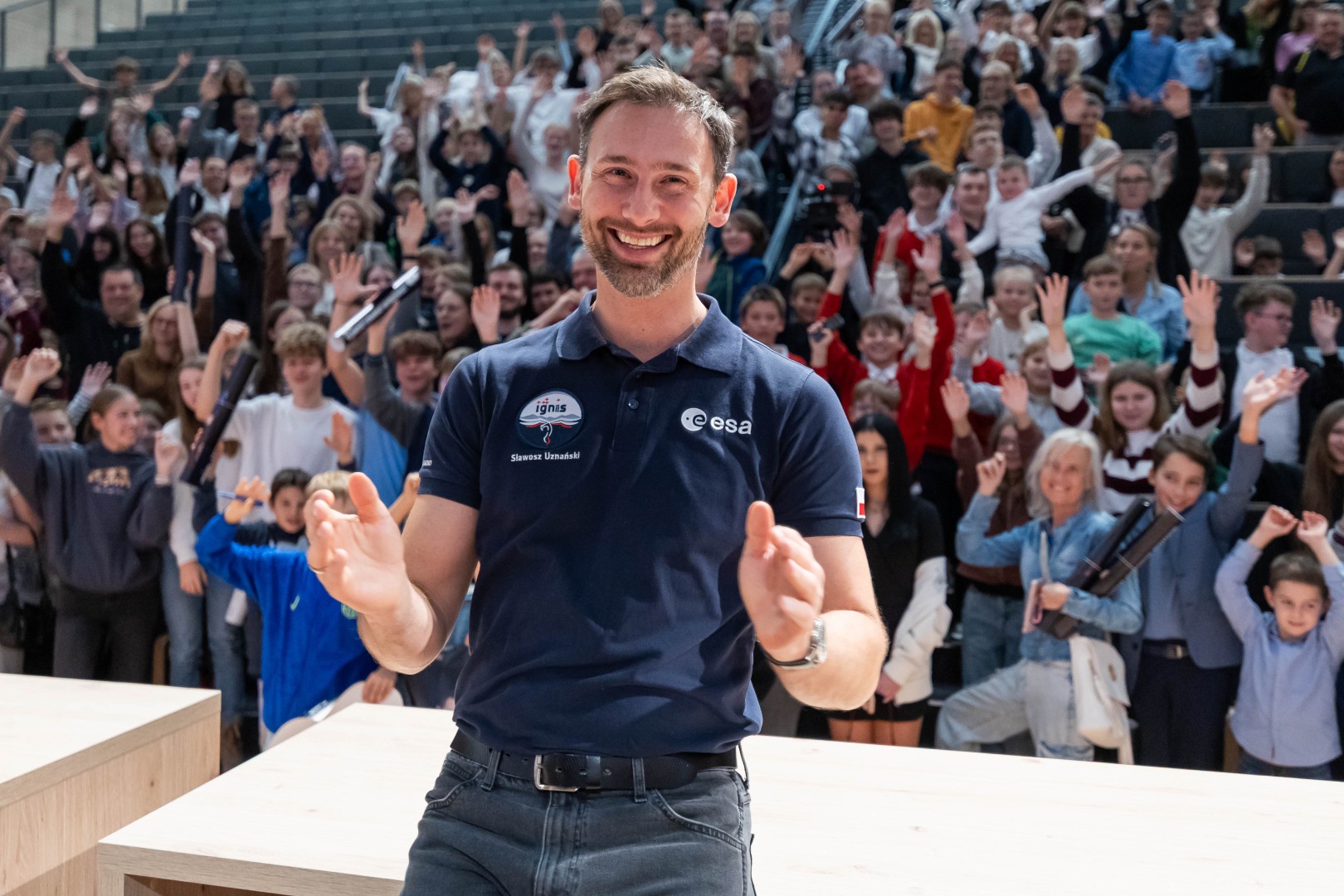 17 października sala widowiskowo-sportowa Zatoki Sportu Politechniki Łódzkiej wypełniła się po brzegi. Ponad 650 osób – studenci, doktoranci oraz pracownicy uczelni – przybyło, by spotkać się z wyjątkowym gościem, wybitnym absolwentem Politechniki Łódzkiej: dr. inż. Sławoszem Uznańskim-Wiśniewskim, polskim astronautą projektowym Europejskiej Agencji Kosmicznej (ESA) i uczestnikiem misji IGNIS.